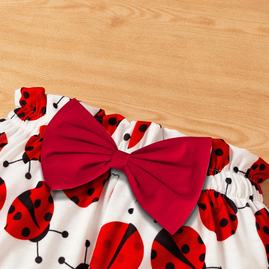 3Pcs Baby Girl Ladybug Long Sleeve Romper and Bowknot Trousers Set,Fall Clothes Newborn Outfit,0-18 Month