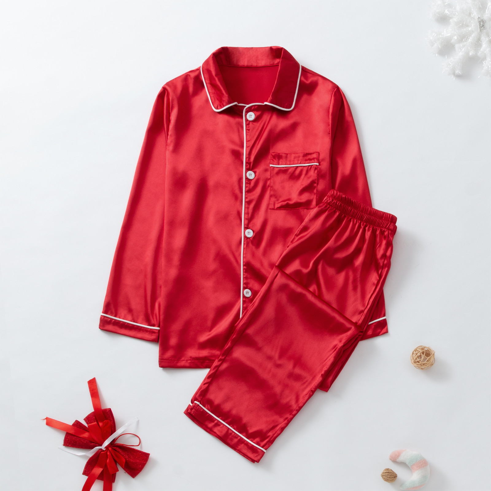 Christmas Satin Pajamas PJ's Solid Family Matching Xmas Sleepwear Pants Set for Adults