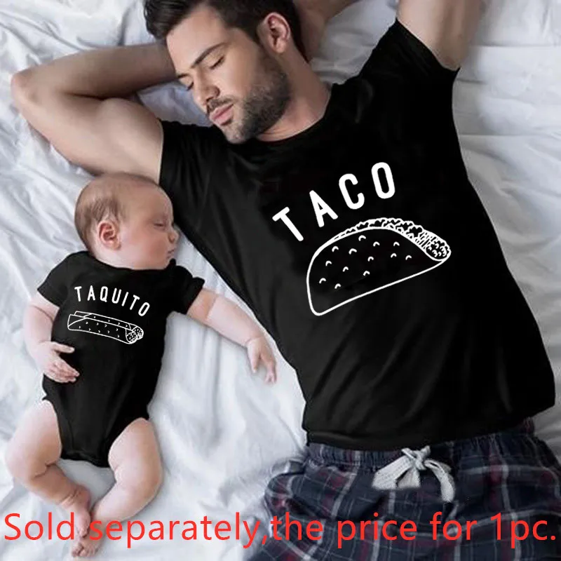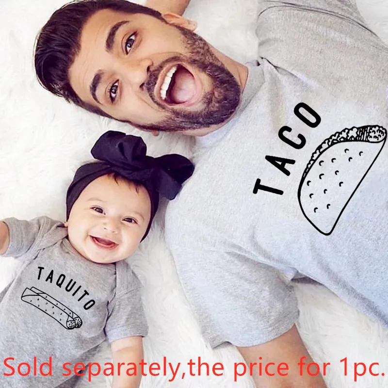 Funny Daddy and Me Tshirts Taco Family Matching Clothes Tshirt Baby Bodysuit Kids Tshirt Family Look Father Son Family Clothes